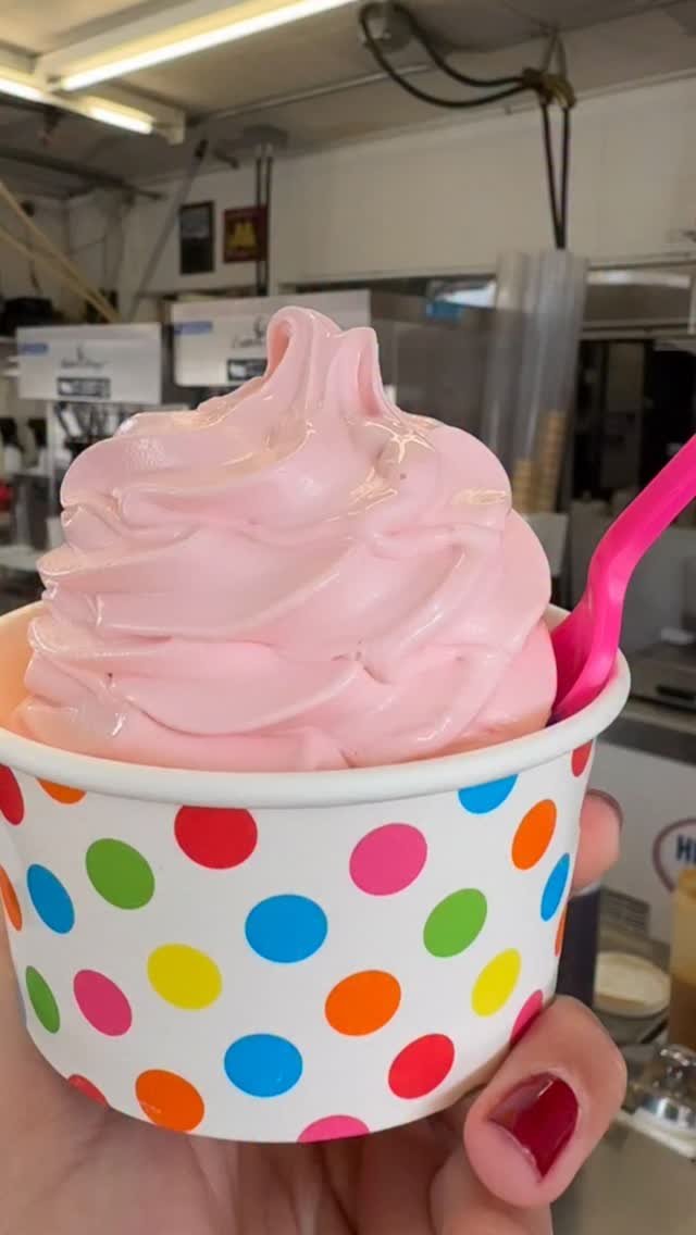 Hilltopper: Vanilla Soft Serve, Strawberry Topping, Chocolate Dip Coat, Whipped Cream, and Cherry
